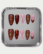 Celestial Cocoa captures warmth and cosmic elegance in one refined design. Deep cocoa tones and tortoise accents are elevated with gold celestial charms, creating a rich, dimensional look that feels bold yet sophisticated.
