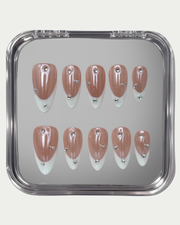Pearl Muse is understated elegance with a luminous edge. A creamy pearl-toned base meets crisp white French tips and delicate crystal accents, creating a look that feels refined, modern, and effortlessly polished.